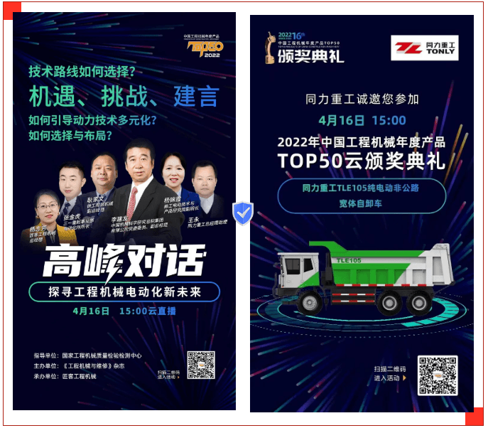 2022年4月16日是个令人振奋的日子,神舟十三号载人飞船返回舱快准稳的安全着陆,三名宇航员平安返回,祖国强大,令人振奋。2022中国工程机械年度产品TOP50“新能源金奖”产品颁奖活动在北京隆重举行,同力重工TL105E纯电动非公路宽体自卸车荣获工程机械行业“新能源金奖”产品称号,这消息,同样令人振奋!