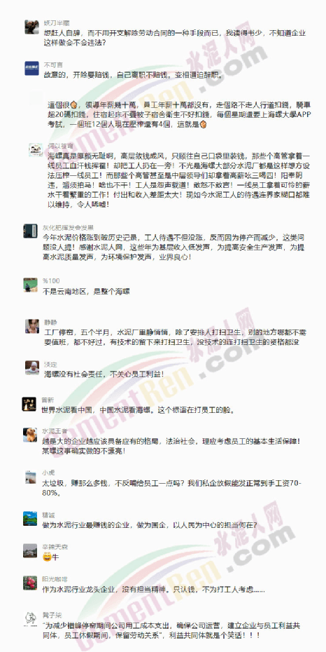 尽管绝大多数水泥企业在错峰停产,员工休假期间都会停发绩效工资。但是水泥行业的“赚钱王”在错峰生产时只发六百多元给员工还是引起了众多网友的热评: