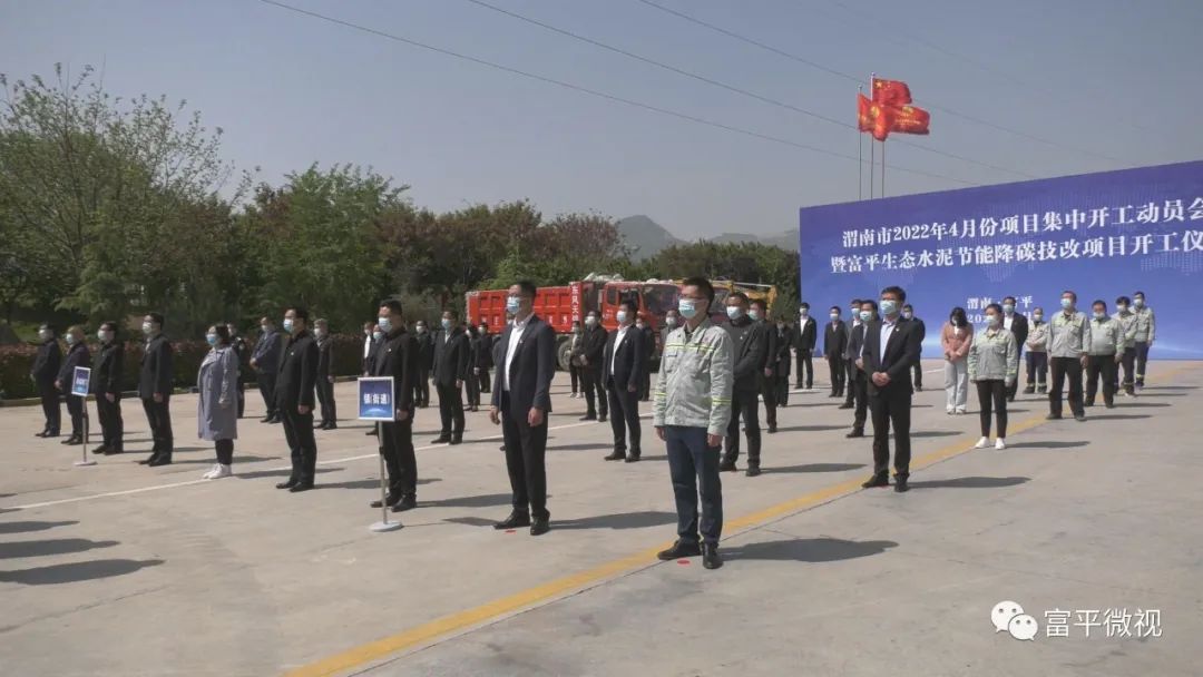 富平县委副书记、县长景军荣主持并向渭南市主会场报告富平县2022年4月份新开工项目情况,县委副书记、政法委书记亢鹏,县委常委、县委办主任黎忠利参加,副县长段冰介绍富平生态水泥节能降碳技改项目情况,陕西富平生态水泥有限公司董事长作庞龙表态发言。