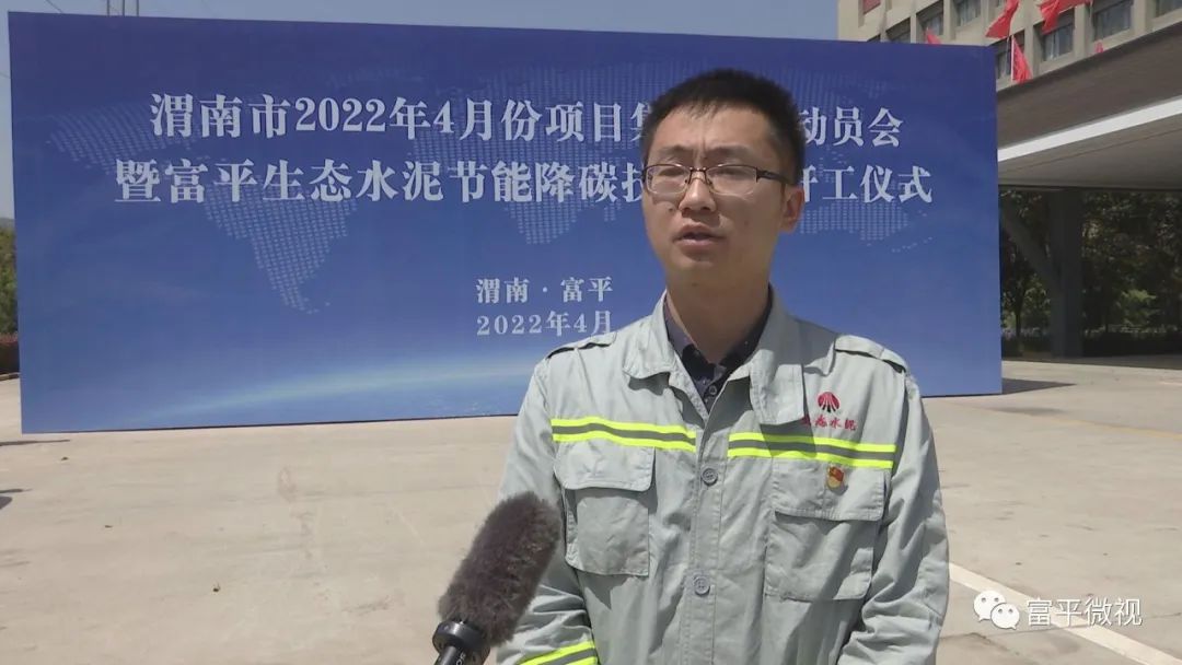 陕西富平生态水泥有限公司总经理 邓洋:我们富平生态水泥公司将认真落实县委、县政府的要求,从第一道工序起抓质量,从第一个工作日起抓进度,优化资源配置,加快施工进度,科学合理实行交叉作业,倒排工期表,实施“分包”责任机制,保质、保量按期完成本次节能降碳综合改造项目的建设,为富平奋力打造工业高质量发展新高地做出应有的贡献。