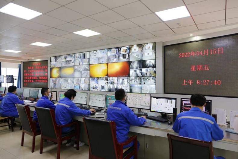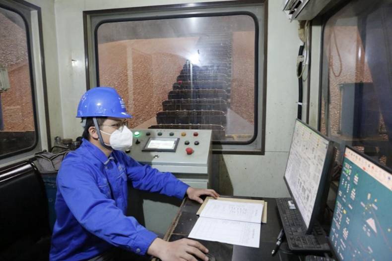 中控操作班通过中央控制系统将粉煤喷入窑内进行高温锻烧,生料粉在高温熔融和自重力作用下自然造粒。