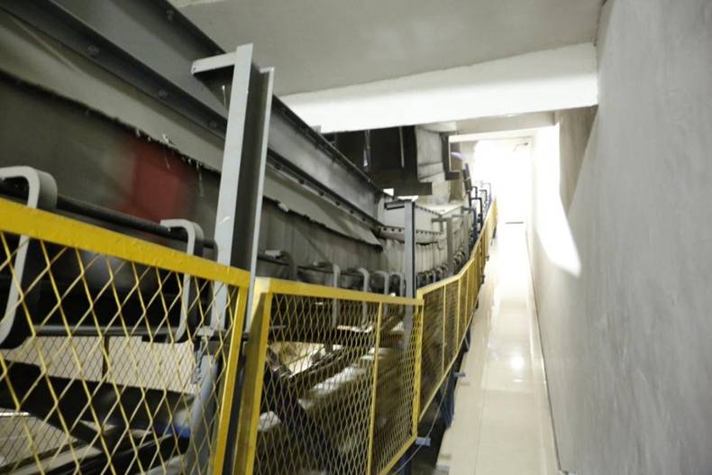 原料配料班组通过中子在线分析后配比,经辊压机粉磨制成生料粉。