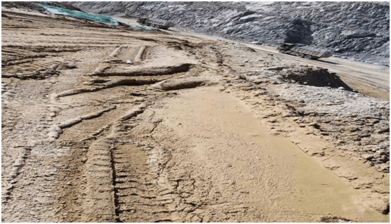 图2 天寅矿业挖机及铲车作业未采取喷淋降尘措施