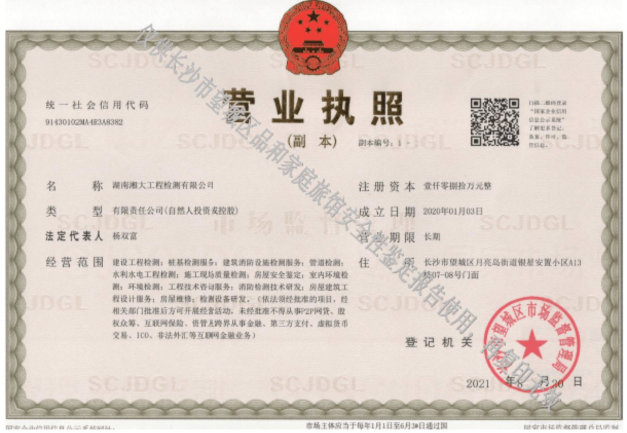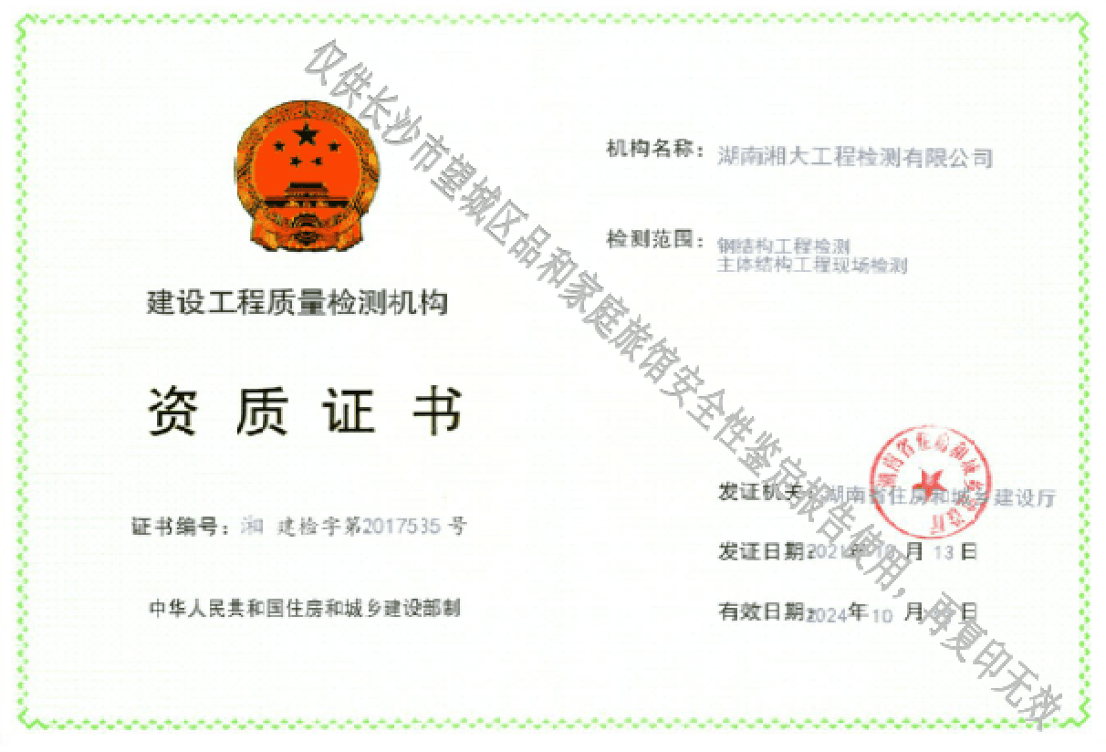 经查,2022年4月13日,湖南湘大工程检测有限公司(法人代表:谭某,公司性质:私营,注册地:望城区月亮岛街道)对该自建房家庭旅馆(4、5、6楼)进行房屋安全鉴定后出具虚假房屋安全鉴定报告,公司法人代表谭某及技术人员宁某、汤某、刘某、龚某等5人涉嫌提供虚假证明文件罪。