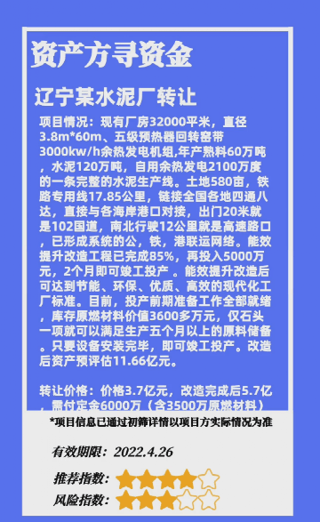 如此条件,因何而转让,不由让人心生疑问。相关行业分析人士表示,近两年水泥市场行情下行,不仅产量下降,利润下滑,部分企业甚至出现了亏损。2021年绝大多数企业出现增收不增利的情况。疫情影响下,水泥行业拐点提前出现,原本北方区域水泥通过铁水联运向南方区域输送,近期南方低价熟料逆势向北方冲击。