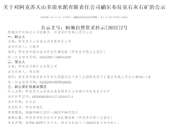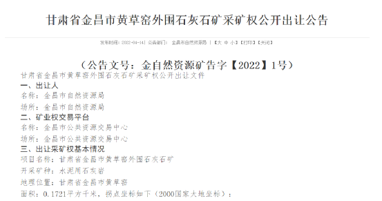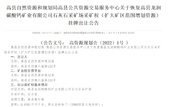 今年以来自然资源部官网公布的石灰石矿采矿权出让公告共6条,建筑用砂石矿等相关信息200多条。