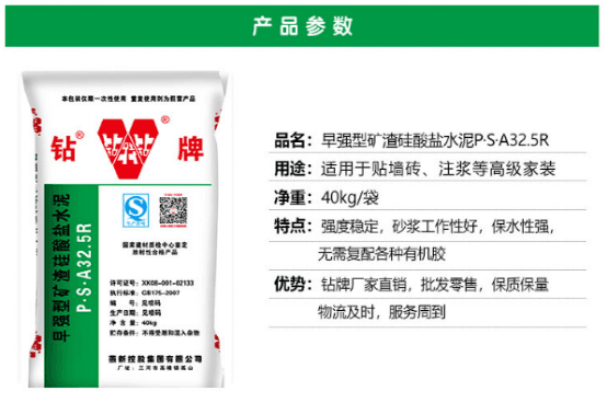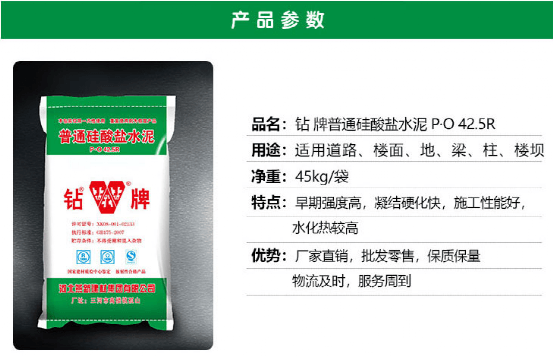 据查询,钻牌水泥官网报价显示,P.S.A32.5R水泥净含量40kg/袋,P.O42.5R水泥净重45kg/袋。