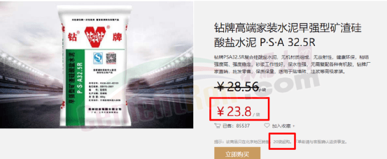 一袋P.S.A32.5R水泥售价23.8元;一袋P.O42.5R水泥售价30元,且都明确20包起售。