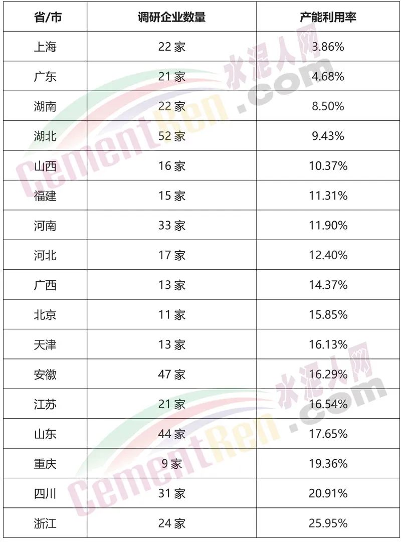 4月下旬,上海、湖北、河南、安徽、江苏、山东、重庆、四川等省市400多家商品混凝土企业平均产能利用率不足14%。