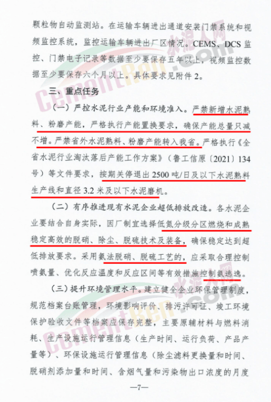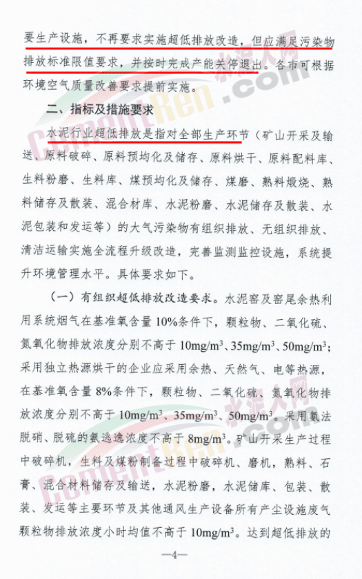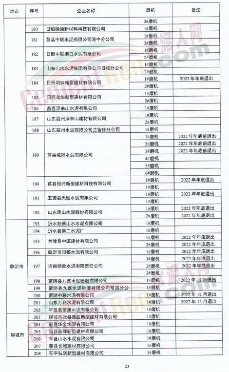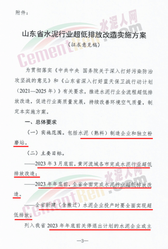 山东全省新建(含搬迁)水泥企业投产时要全面实现超低排放。列入山东省2023年年底前关停退出计划的水泥企业或主要生产设施,不再要求实施超低排放改造,但应满足污染物排放标准限值要求,并按时完成产能关停退出。