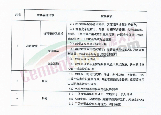水泥行业超低排放是指对全部生产环节(矿山开采及输送、原料破碎、原料预均化及储存、原料烘干、原料配料库、生料粉磨、生料库、煤预均化及储存、煤磨、熟料煅烧、熟料储存及散装、混合材库、水泥粉磨、水泥储存及散装、水泥包装和发运等)的大气污染物有组织排放、无组织排放、清洁运输实施全流程升级改造,完善监测监控设施,系统提升环境管理水平。具体要求如下: