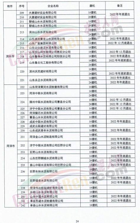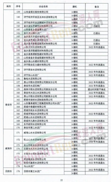 单体粉磨站标注为“退出”或“拆除”的共164台磨机,其中今年底前退出的共156台,5月份退出的2台。已退出的4台磨机。山东临朐振龙水泥有限公司1#磨机标注为“已拆除”。曲阜中联水泥有限公司泰安分公司l#磨机标注为“退出时间暂不确定”。