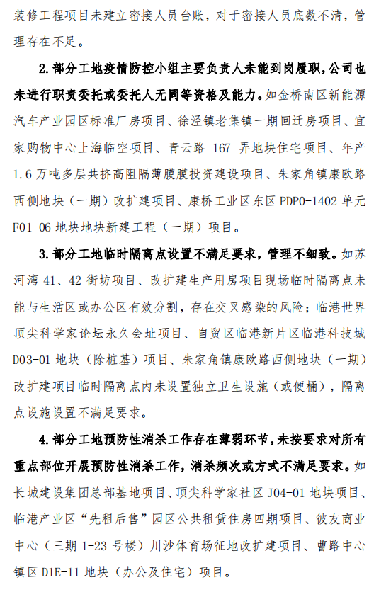 2.部分工地疫情防控小组主要负责人未能到岗履职,公司也未进行职责委托或委托人无同等资格及能力。