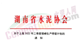 据水泥人网了解,早在4月13日,湖南省水泥协会就发布《关于上报2022年二季度错峰生产停窑计划的通知》,其中就有提到湖南省水泥熟料生产线自4月1日至5月31日期间,错峰停窑15天。