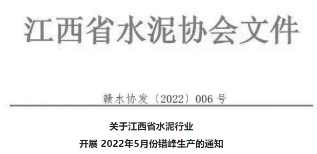 江西省发布关于水泥行业开展2022年5月份错峰生产的通知,要求江西省境内49条水泥熟料生产线5月10日00:00-5月19日24:00,错峰生产10天。