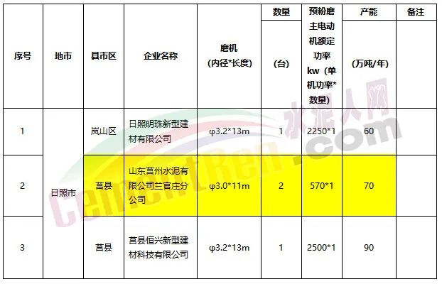 来源:山东省发改委《山东省3.2m及以下水泥粉磨装置清单(第二批)》