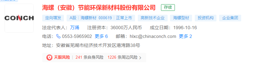 天眼查显示,海螺建材成立于2018年8月31日,法定代表人为王志明,注册资本为5000万元人民币。公司经营范围含水泥制品、钢结构构件、轻质建筑材料生产、加工等。