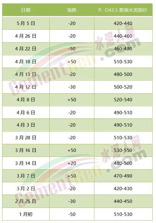备注:以上报价为单位元/吨,数据来源水泥人网信息中心人工采集,仅供参考,如与实际成交不符,请以实际成交为准。