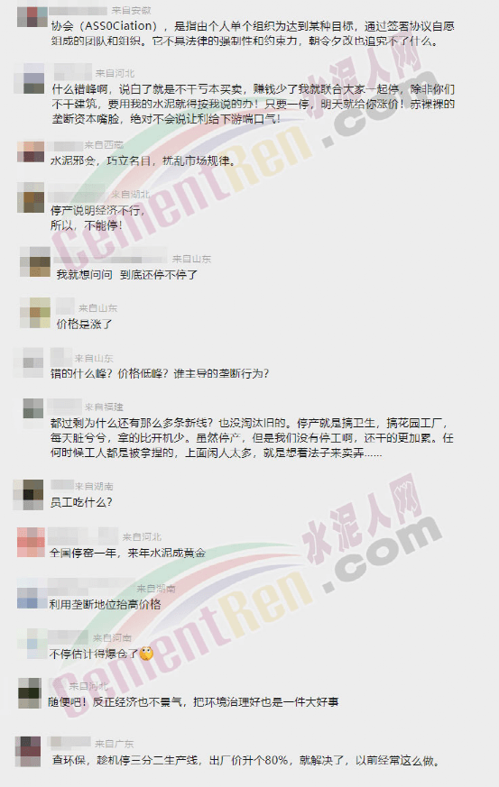 某水泥企业生产负责人表示,暂未收到集团公司的通知,目前还不知道是停还是不停。按原定计划是要停的,但是看媒体报道说协会又不让停了。