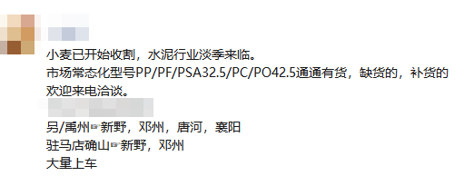 当地经销商表示“目前,小麦已开始收割,水泥行业淡季即将来临。”
