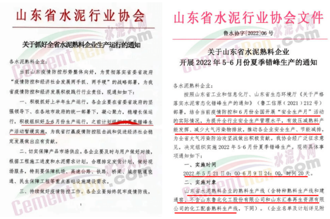 山东省水泥协会本月中旬以来不到十天的时间连发两文,其一是通知5月21日起错峰停窑20天,其二是通知暂缓错峰停窑。
