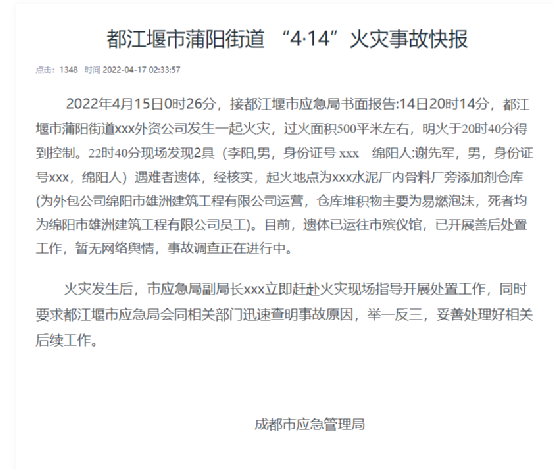 这已经是近期拉法基水泥发生的第二起事故了。据水泥人网此前消息,4月14日,四川成都都江堰拉法基水泥公司发生一起火灾,过火面积500平方米左右,造成2人死亡。经核实,起火地点为水泥厂内骨料厂旁添加剂仓库。