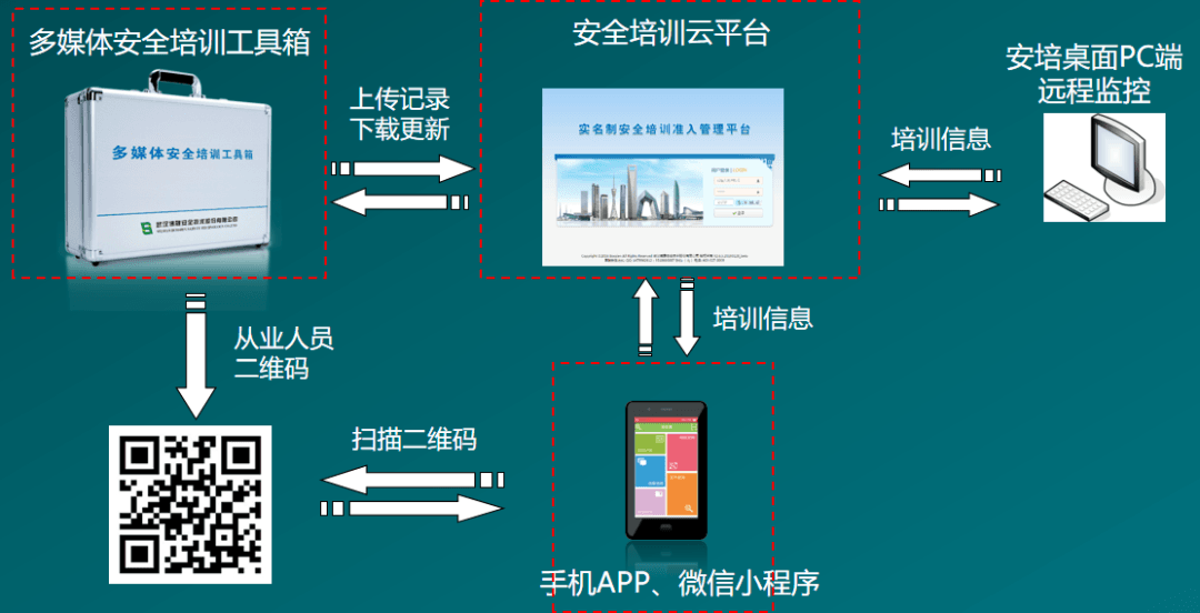 多媒体安全培训工具箱体积小巧、便携易用,采用软件、硬件高度集成一体化设计,以电脑主机为主体、内置多媒体安全培训智能软件和及专业的多媒体课程,集成身份证识别仪、指纹识别仪、IC/ID卡识别仪、人脸识别仪、高清摄像仪以及无线答题器等,集实名制信息采集、多媒体培训、无纸化考试、自动考勤建档、云端记录同步、智能门禁对接等实用功能于一体,助力企业安全培训工作的合法合规管理,为全面落实全员安全生产责任制提供有力抓手。