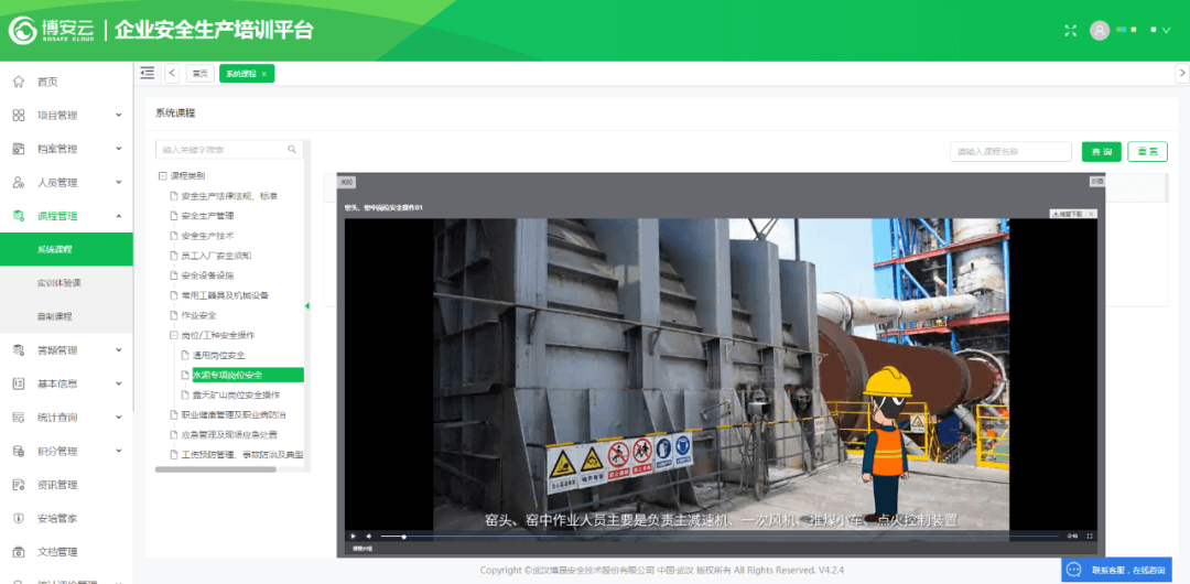 3、课程内容汇集各行业专家的精品课程,拥有课程云、题库云、专家云等丰富培训资源,应用场景包括:入场教育、三级安全教育、管理知识安全培训、各工种作业安全教育、专项作业安全教育以及事故案例警示教育等,能满足水泥企业各岗位安全生产培训的需要;
