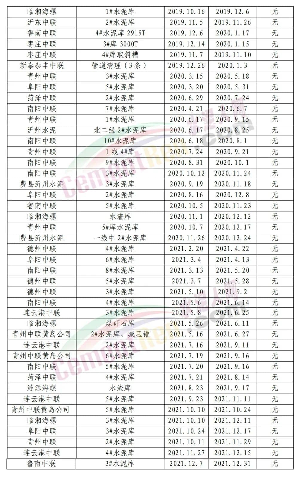 2021年1月16日下午,山西省长治市长北旧路一家水泥厂内一名工人在清理一座大型水泥储罐内壁期间,不慎掉进水泥储罐底部,造成1人受伤。