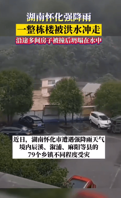 截至20日08时,此次降雨过程共出现24县次83站次大暴雨、2县次6站次特大暴雨。6月19日,怀化辰溪县洪水中一栋两层楼房被直接冲走,沿途还撞到了多栋房屋,引发连续坍塌。6月21日16时44分,怀化市气象台发布暴雨橙色预警信号,请市民加强防范。