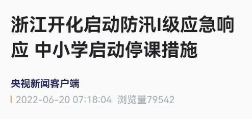 开化县防汛防旱指挥部、突发地质灾害应急指挥部决定从6月20日6时00分将防汛应急响应提升为Ⅰ级和维持地质灾害Ⅳ级响应。根据防汛应急响应I级要求,为保障师生生命安全,全县中小学(幼儿园)启动停课措施,各校立即按照应急预案要求,通知家长告知学生暂缓来校并全面加强防汛安全教育和监管。
