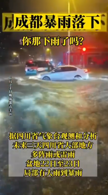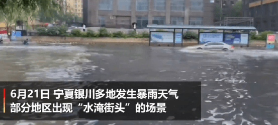 6月21日,宁夏银川多地发生暴雨天气,部分地区出现“水淹街头”的场景。在降雨较为严重的地区,积水已没到小腿,马路变为“河道”,行车如“划船”。当日18时22分,银川市气象台升级暴雨橙色为红色预警信号,这也是今年银川发布的首个暴雨红色预警。