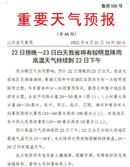 山东发重要预报:5市大到暴雨局部大暴雨;济南连续三天有雨,局部暴雨。
