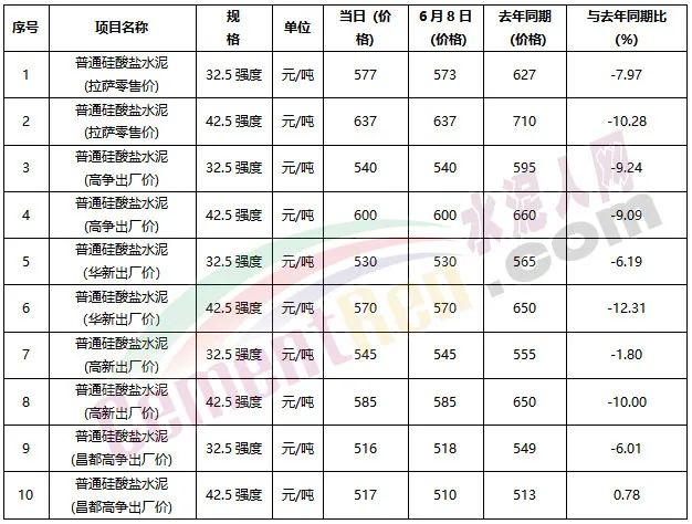 据水泥人网了解,2020年6月份西藏地区重点项目价格执行情况显示,高争建材、华新水泥、高新雪莲、昌都高争针对全区重点项目销售的水泥继续执行政府指导价,42.5(强度)600元、52.5(强度)800元。市场价格P.O42.5水泥达到700元/吨以上,个别区域水泥市场价甚至达到1000元/吨左右。