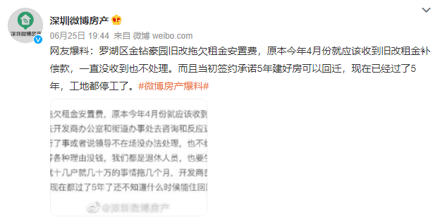 当初签约承诺5年建好房可以回迁,现在已经过了5年,工地都停工了。