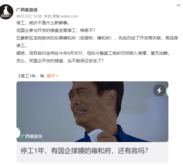 五象新区龙岗板块的东鼎雍和府,先后历经了开发商失联,商品房停工。项目按约定将在今年9月交付,但如今整盘工地却仍然陷入停摆,毫无动静。