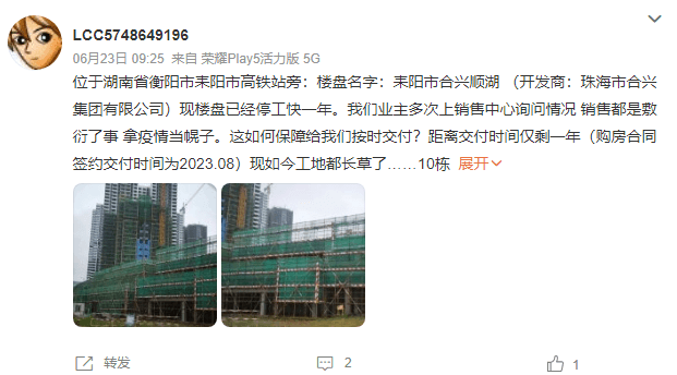 耒阳市合兴顺湖 (开发商:珠海市合兴集团有限公司)现楼盘已经停工快一年。