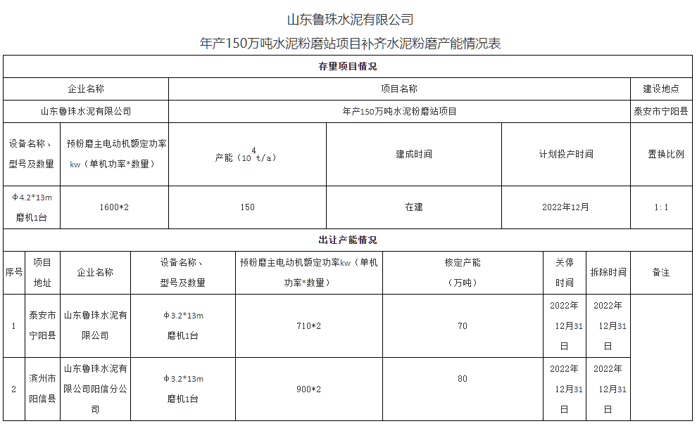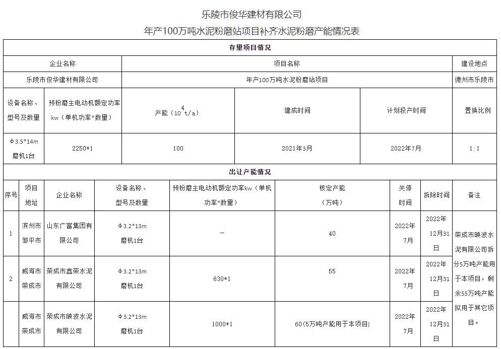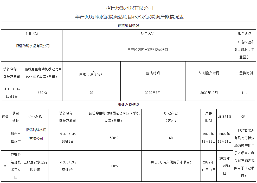 日前,山东工信厅发布《关于5家企业水泥粉磨项目补齐产能情况公示》称,根据《关于印发坚决遏制“两高”项目盲目发展的若干措施的通知》(鲁政办字〔2021〕98号)文件要求,招远玲珑水泥有限公司、茌平弘润新型建材有限公司、山东鲁珠水泥有限公司、东营市杰达新型建材有限公司、乐陵市俊华建材有限公司已建成或已开工建设的水泥粉磨违规存量项目,应按照项目立项时产能替代政策补齐产能。