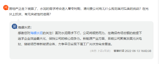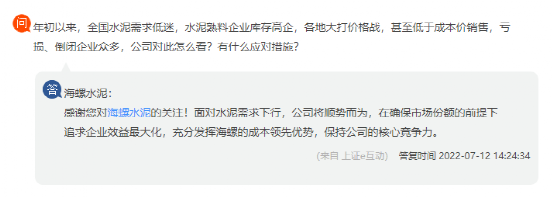 海螺水回复称,面对水泥需求下行,公司将顺势而为,在确保市场份额的前提下追求企业效益最大化,充分发挥海螺的成本领先优势,保持公司的核心竞争力。