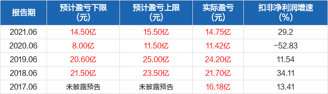 近5年半年报扣非净利润预测情况