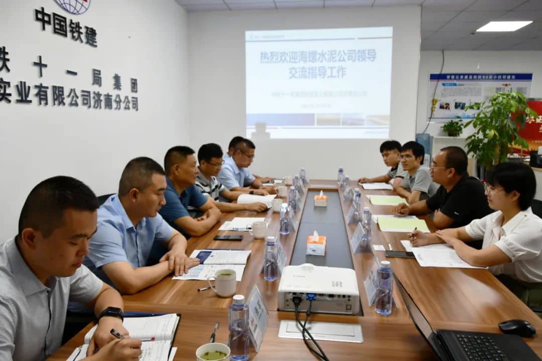 7月12日,安徽海螺水泥股份有限公司长三角大区执行总裁、江苏区域总裁秦宏基,江苏区域执行总裁桂印水、部长罗红刚,区域销售处负责人一行6人到济南分公司就战略合作事宜开展座谈交流。