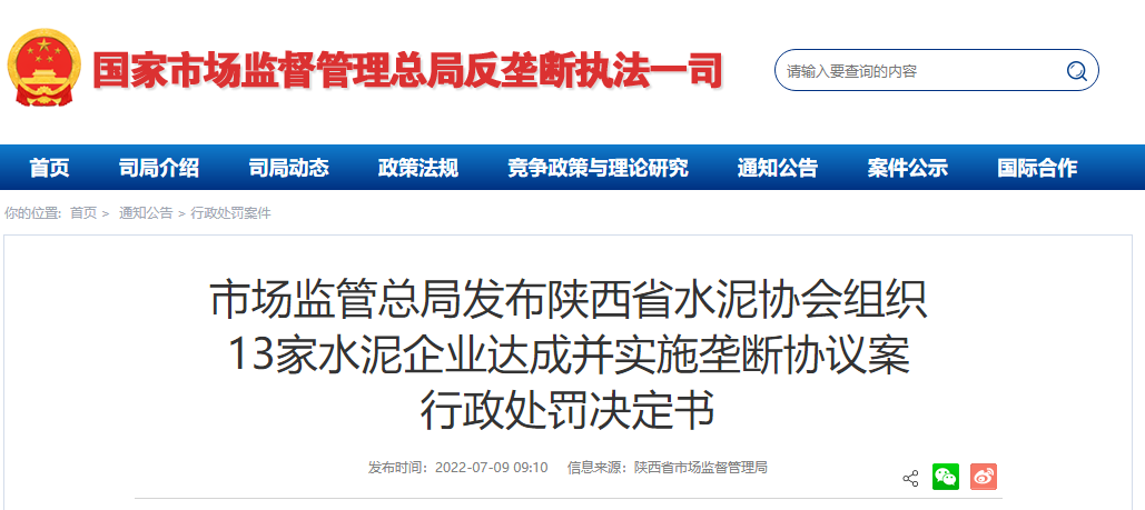 近来,陕西13家水泥企业达成并实施垄断协议案成为整个行业关注的焦点。