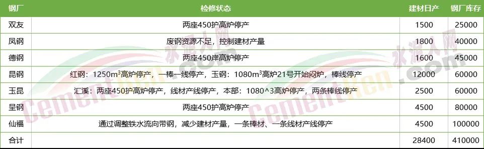 河南省亚新一座高炉焖炉,两条盘螺轧线停产检修