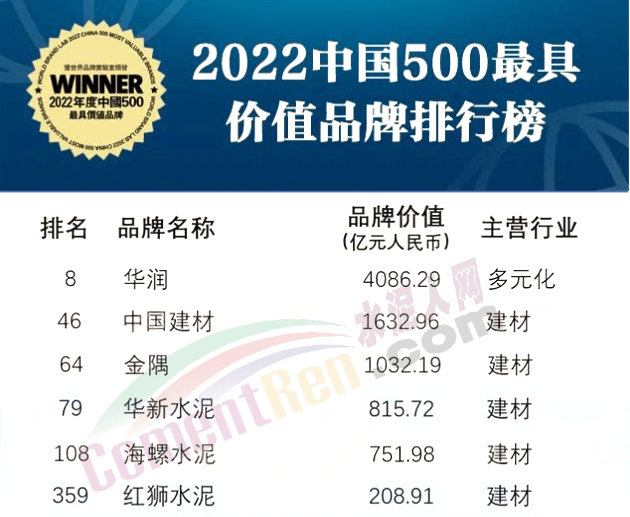 水泥行业中华润、中国建材、金隅、华新水泥、海螺水泥、红狮水泥等多家企业入选,其中华润主营行业为多元化。