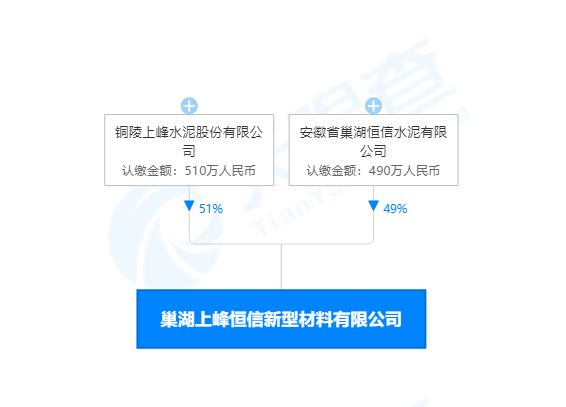公司由铜陵上峰水泥有限公司和安徽省巢湖恒信水泥有限公司合股经营,其中铜陵上峰水股份有限公司拥有51%股份为大股东。