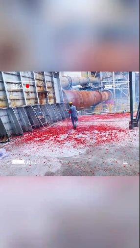 广东某水泥企业点火开窑:视频中不仅放了鞭炮,还有两名员工在杀公鸡。据说这鸡不能是母鸡,母鸡喻意“下蛋”,而水泥窑“下蛋”成了糟糕的喻意。