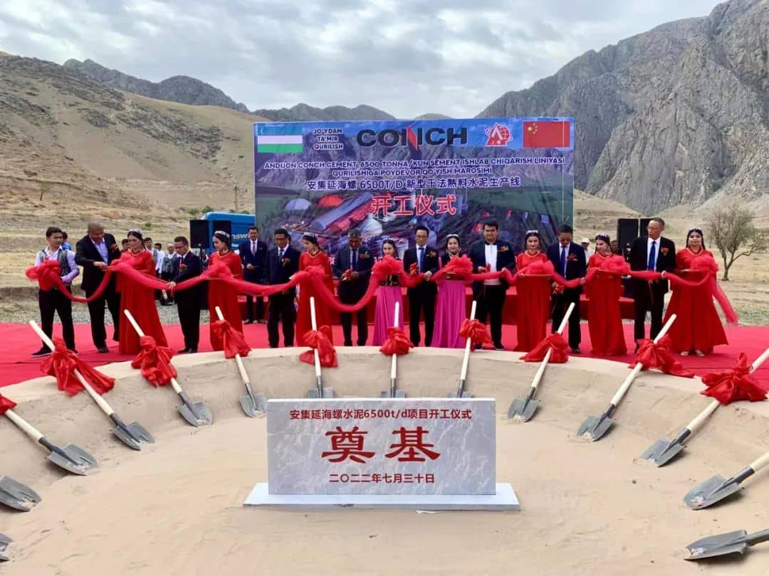 赵维强致辞,对出席典礼的各位嘉宾表示欢迎和感谢,2022年1月30日,安集延海螺水泥厂项目在各方的关注和见证下完成签约,开启了海螺集团“一带一路”发展的新篇章。今天,在社会各界和各位股东的关心、支持下,在合作单位的共同努力下,项目如期开工。在后续的项目施工阶段,安集延海螺将与承建单位中铁一局积极合作,依托双方在管理、技术、资源等方面优势,将安集延海螺水泥厂项目打造成乌兹别克斯坦“先进型、示范型、环保型”项目。