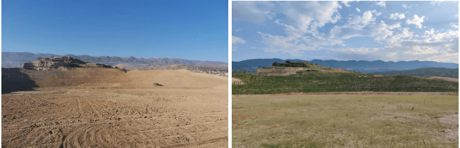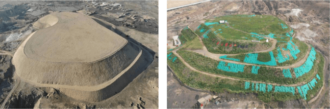 内蒙乌海能源老石旦煤矿Ⅲ号矸石山生态修复应用研究与示范施工前后对比图