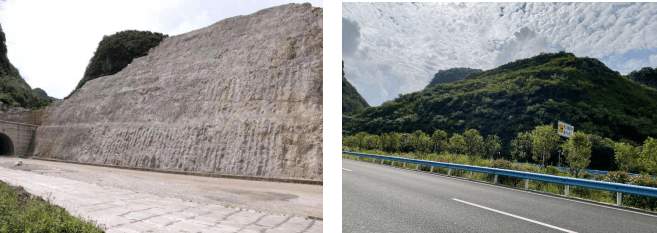 贵州平罗高速公路边坡植被恢复施工前后对比图