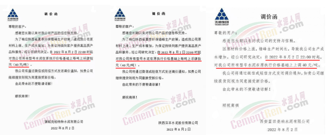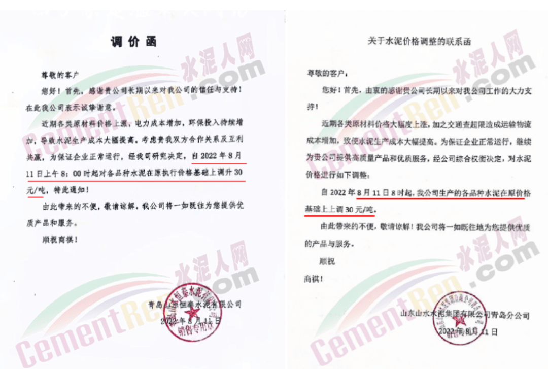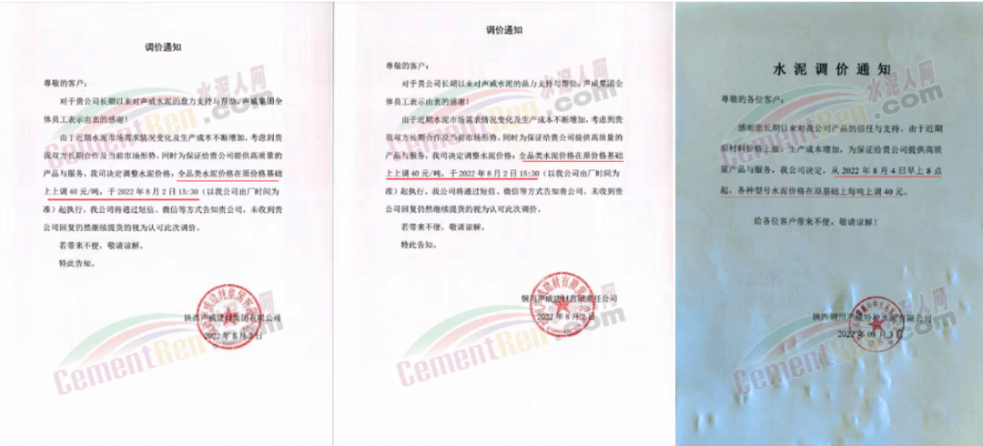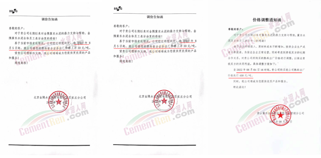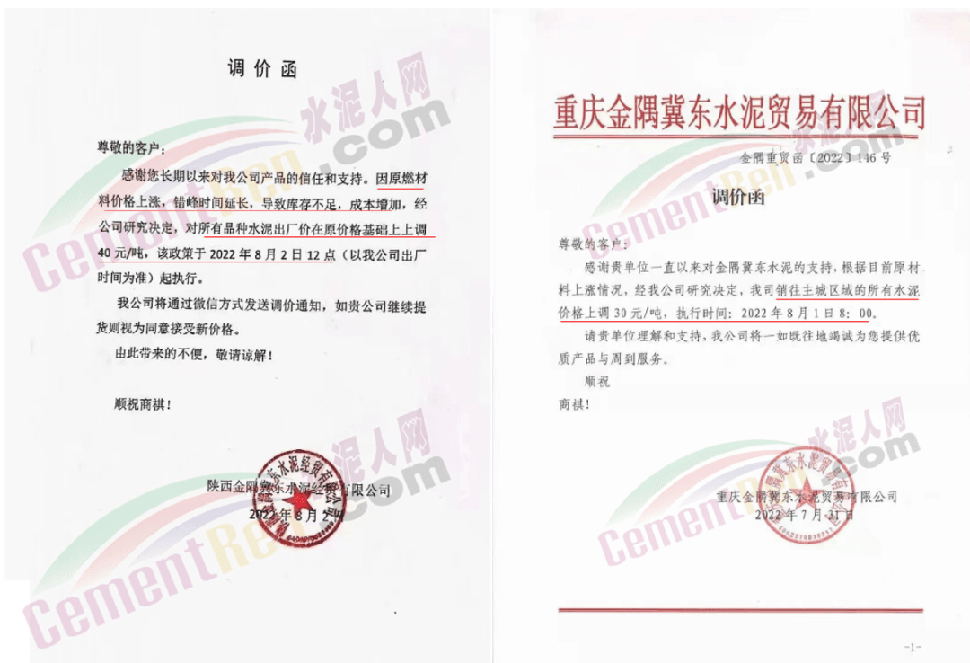 陕西金隅冀东水泥价格上调40元/吨;重庆金隅冀东销往主城区的所有水泥价格上调30元/吨。